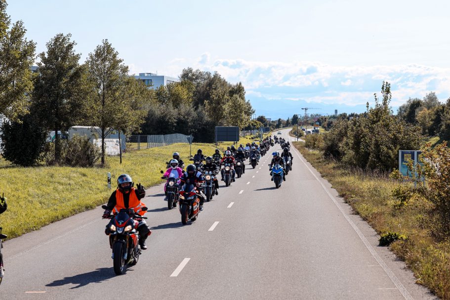 Jedes Jahr organisieren wir ein Spenden-RideOut. Hierbei handelt es sich um eine geführte Tour durch Friedrichshafen und nahe Umgebung. 2024 waren hierbei über 300 Motorradfahrer und -fahrerinnen dabei. Mega!