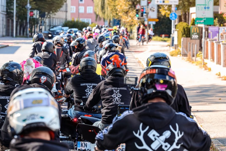 Jedes Jahr organisieren wir ein Spenden-RideOut. Hierbei handelt es sich um eine geführte Tour durch Friedrichshafen und nahe Umgebung. 2024 waren hierbei über 300 Motorradfahrer und -fahrerinnen dabei. Mega!